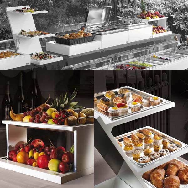BUFFET 5 STARS, PINTI INOX new buffet line, elegantly coordinates the objects for the new presentation trend of self service.
